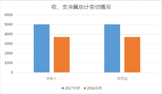 2017年度收、支总计5,016万元。与2016年相比,收、支总计各增加1,304万元,增长35.13%,主要原因是人员政策性工资、奖励调整。
