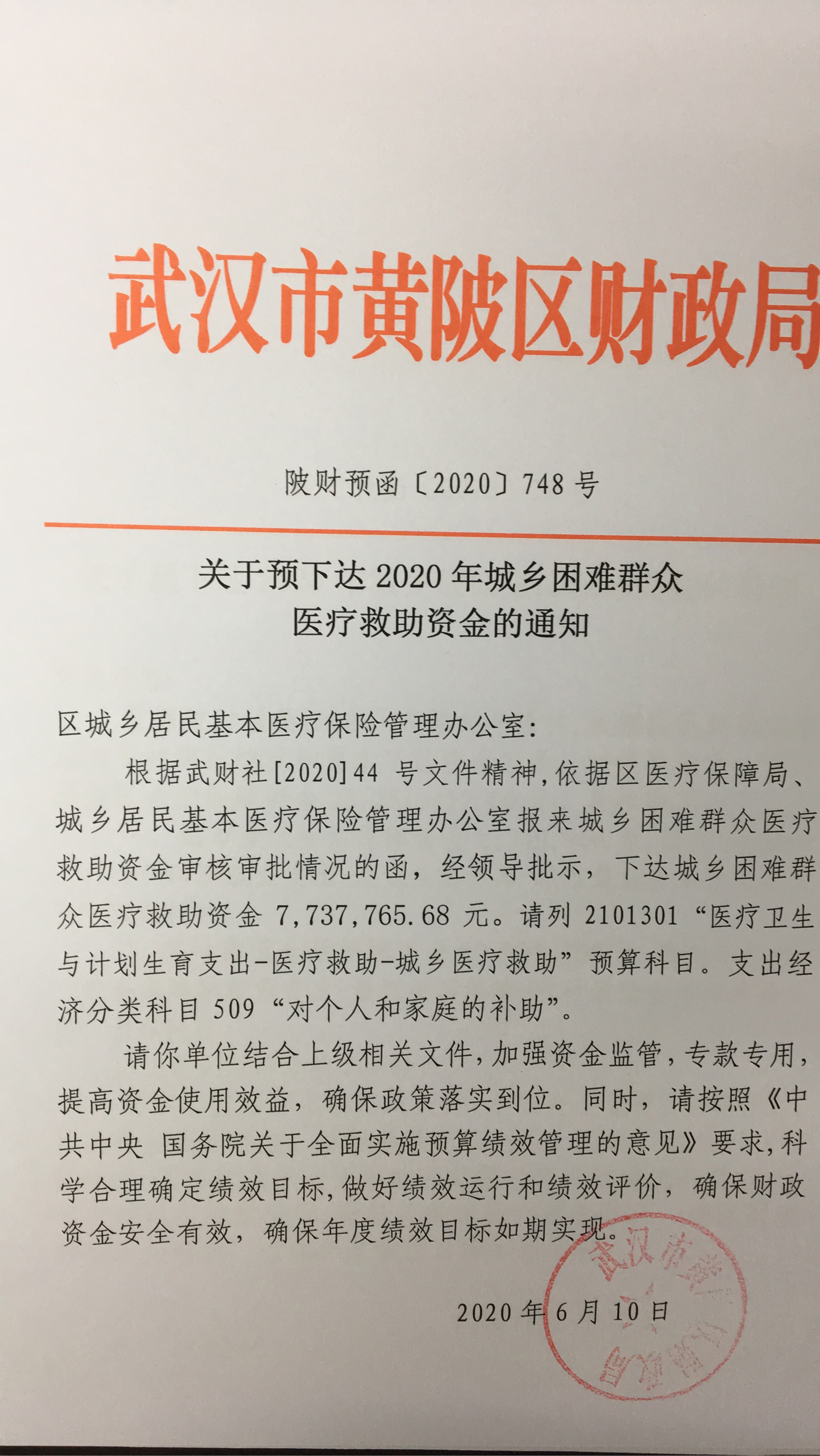 关于预下达2020年城乡困难群众医疗救助资金的通知(陂财预函〔2020〕748号)