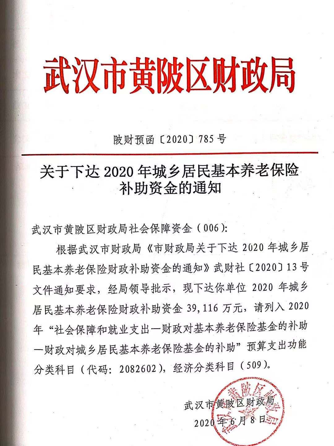 关于下达2020年城乡居民基本养老保险补助资金的通知(陂财预函〔2020〕785号)
