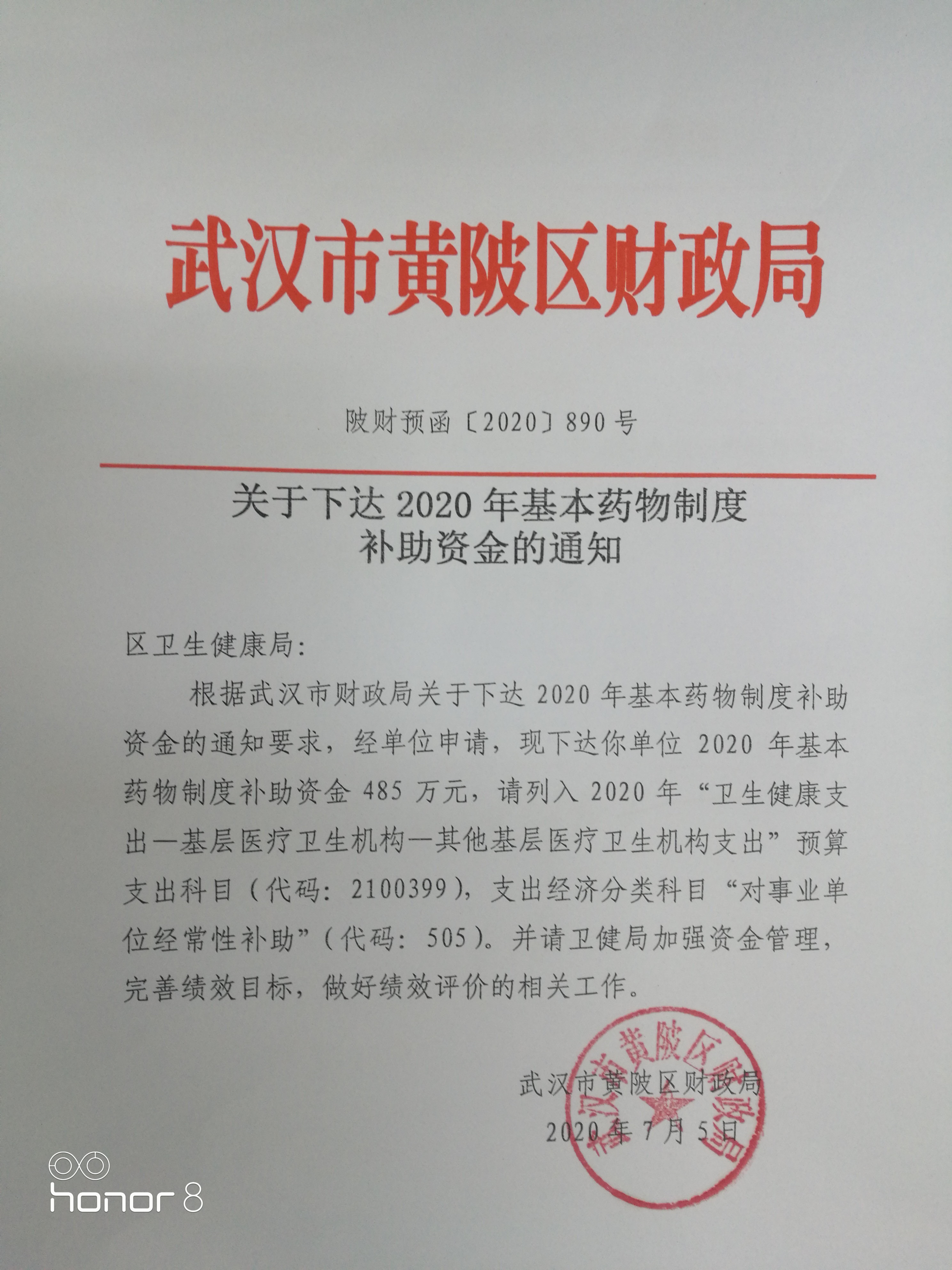 关于下达2020年基本药物制度补助资金的通知 (陂财预函〔2020〕890号)