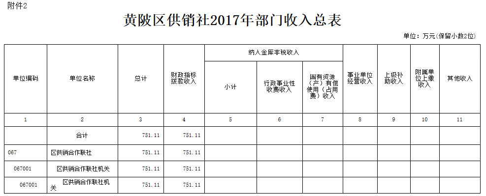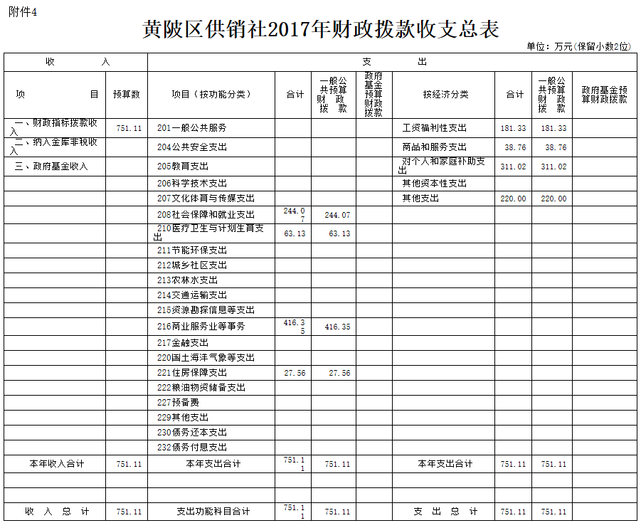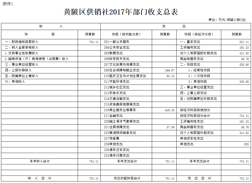 2017年部门预算总收入751.11万元。其中:财政拨款收入751.11万元。