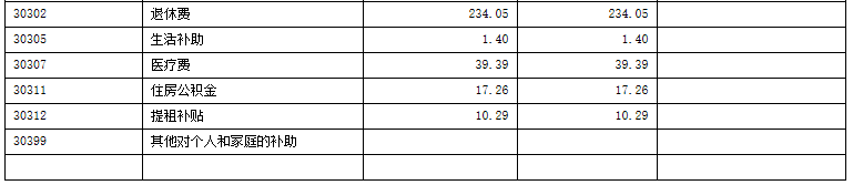 3、对个人和家庭补助支出311.02万元,主要用于离退休人员的离退休费、在职和退休人员医疗补助、在职人员住房公积金、在职和离退休人员提租补贴等支出。