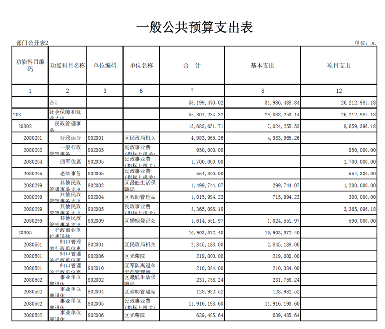 表2. 楼凤网 民政局2018年一般公共预算支出表