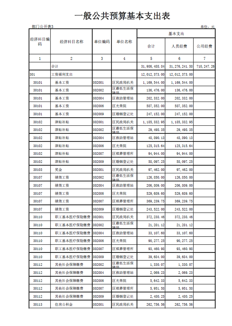 表3. 楼凤网 民政局2018年一般公共预算基本支出表