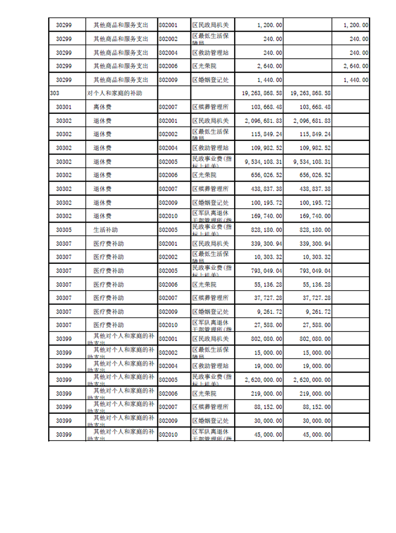 对个人和家庭的补助 1926.39 万元,主要用于:离休费、退休费、医疗费补助、其他对个人和家庭补助支出等。