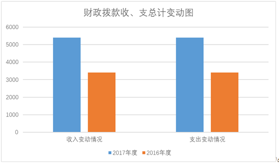 2017年度财政拨款收支总计5,407万元。与2016年相比,财政拨款收、支总计各增加1,827万元,增长51.03%。主要原因是社保信息系统及网上申办大厅、优秀企业人才补助等项目经费支出增加。
