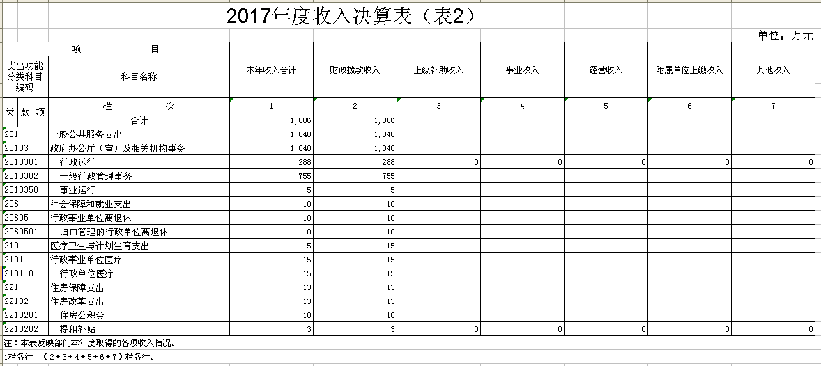2017年度本年收入合计1,086万元。其中:财政拨款收入1,086万元,占本年收入100.00%;上级补助收入0万元,占本年收入0.00%;事业收入0万元,占本年收入0.00%;经营收入0万元,占本年收入0.00%;附属单位上缴收入0万元,占本年收入0.00%;其他收入0万元,占本年收入0.00%。