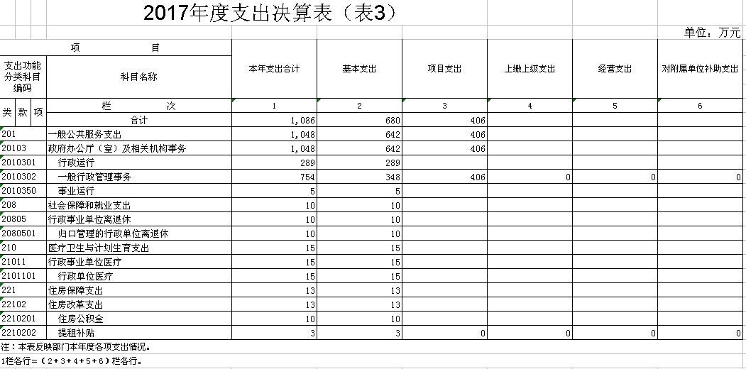 2017年度本年支出合计1,086万元。其中:基本支出680万元,占本年支出62.62%;项目支出406万元,占本年支出37.38%;上缴上级支出0万元,占本年支0.00%;经营支出0万元,占本年支出0.00%;对附属单位补助支出0万元,占本年支出0.00%。