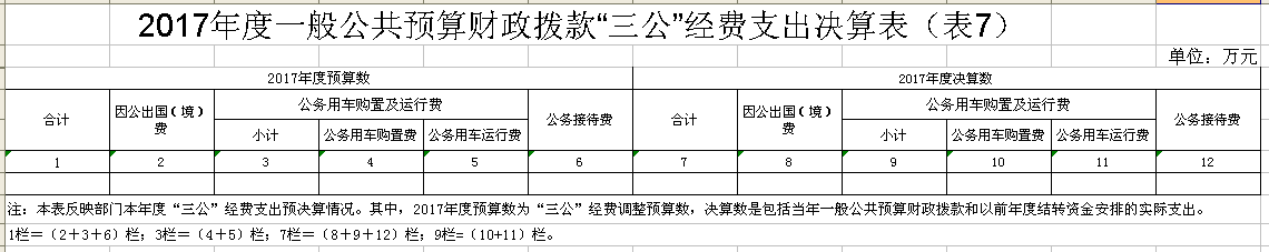 (十四)“三公”经费:指使用一般公共预算财政拨款安排的因公出国(境)费、公务用车购置及运行维护费和公务接待费。其中,因公出国(境)费用反映单位公务出国(境)的国际旅费、国外城市间交通费、住宿费、伙食费、培训费、公杂费等支出;公务用车购置及运行维护费反映单位公务用车车辆购置支出(含车辆购置税)及燃料费、维修费、过桥过路费、保险费、安全奖励费用等支出;公务接待费反映单位按规定开支的各类公务接待(含外宾接待)费用。