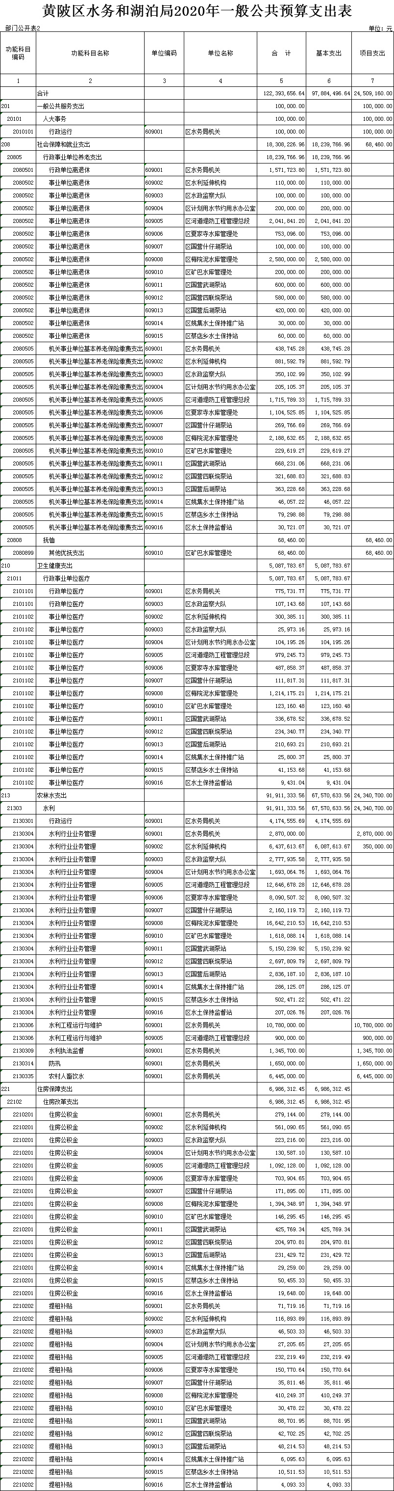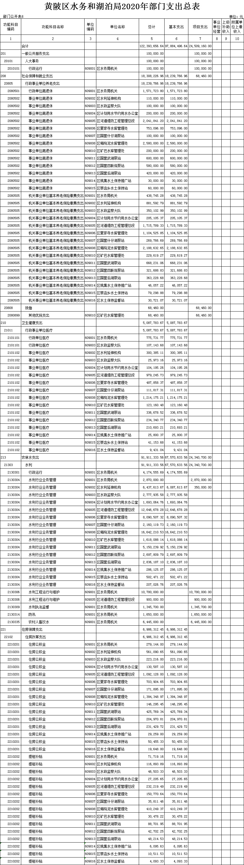 表8. 楼凤网 水务和湖泊局2020年部门支出总表