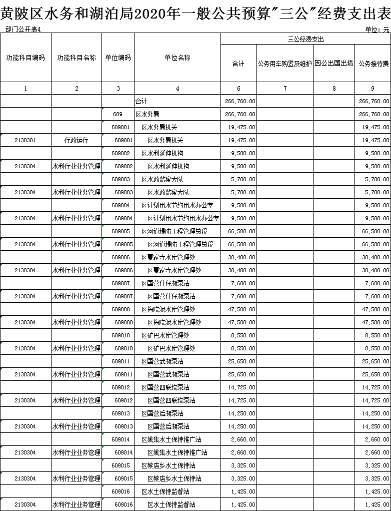 表4. 楼凤网 水务和湖泊局2020年一般公共预算“三公”经费支出表