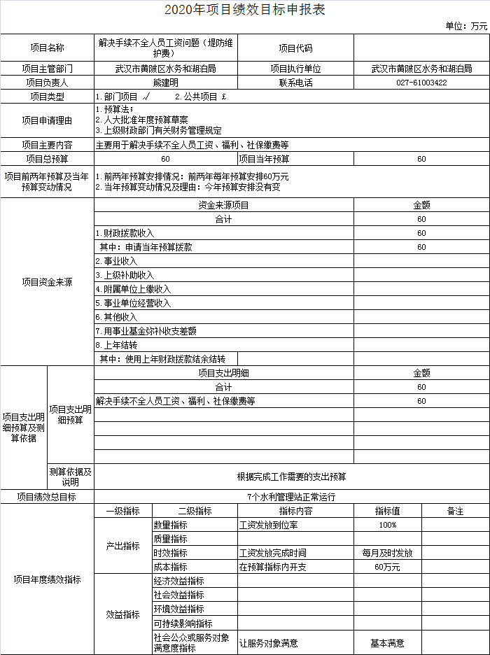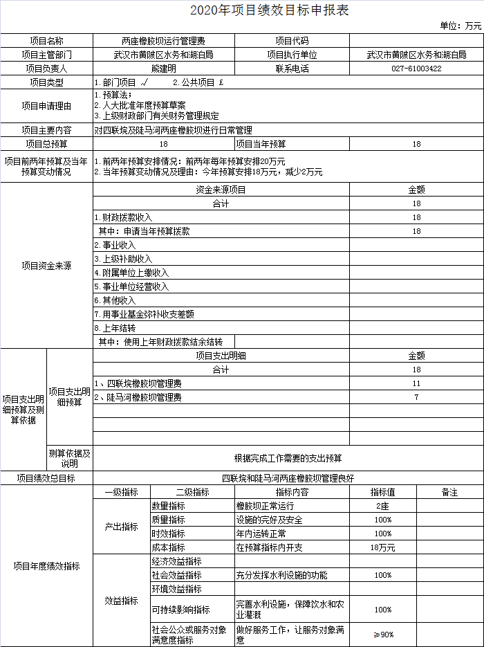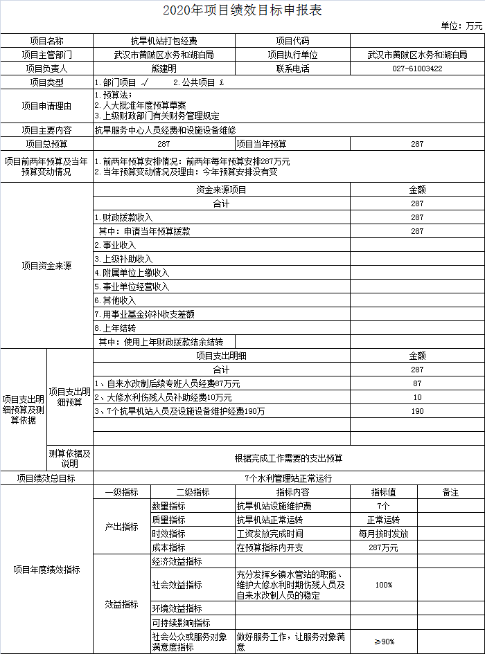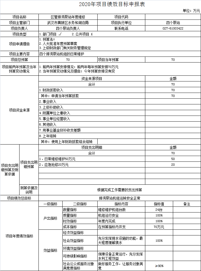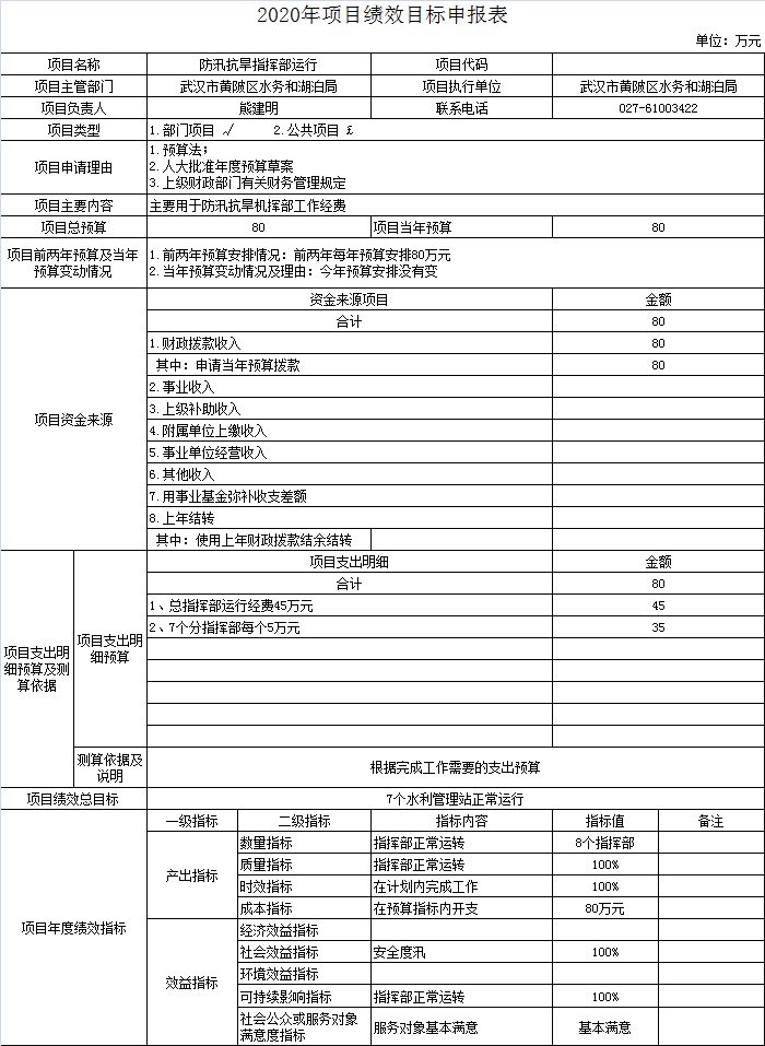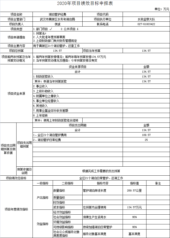 部门公开表10.楼凤网 水务和湖泊局2020年部门项目绩效目标申报表详见附件