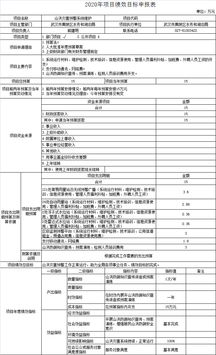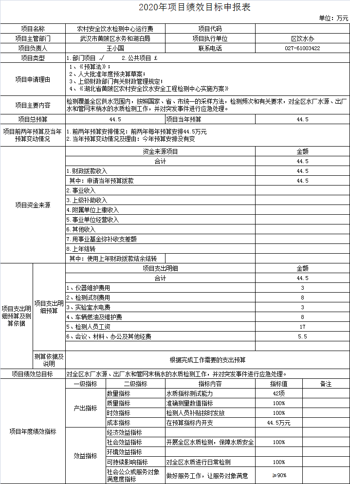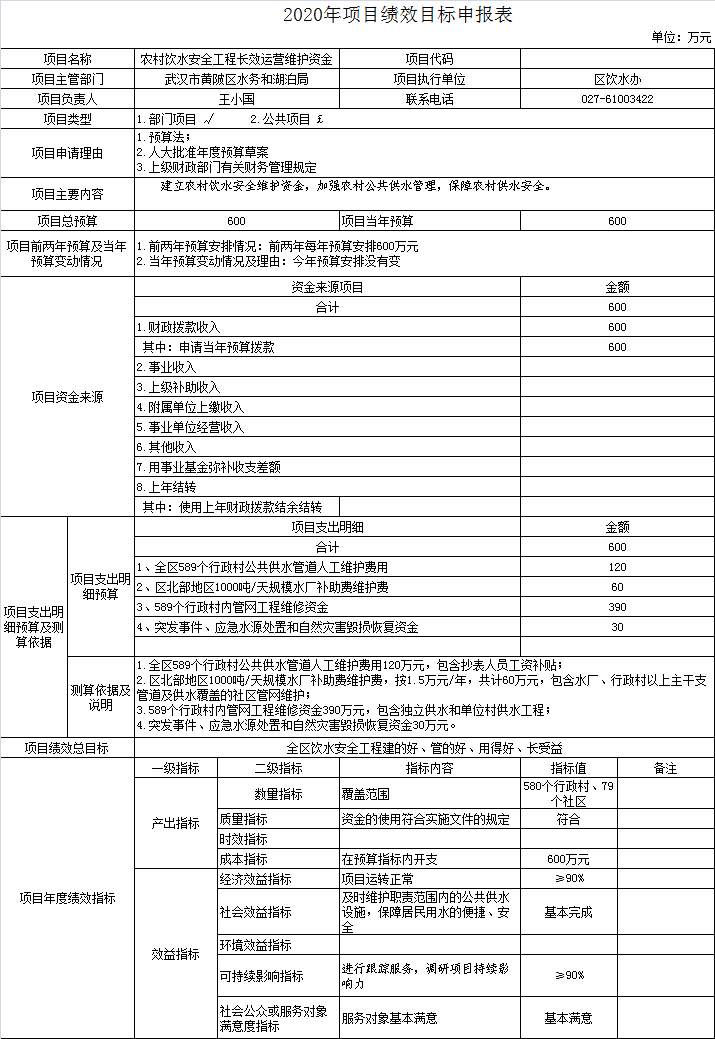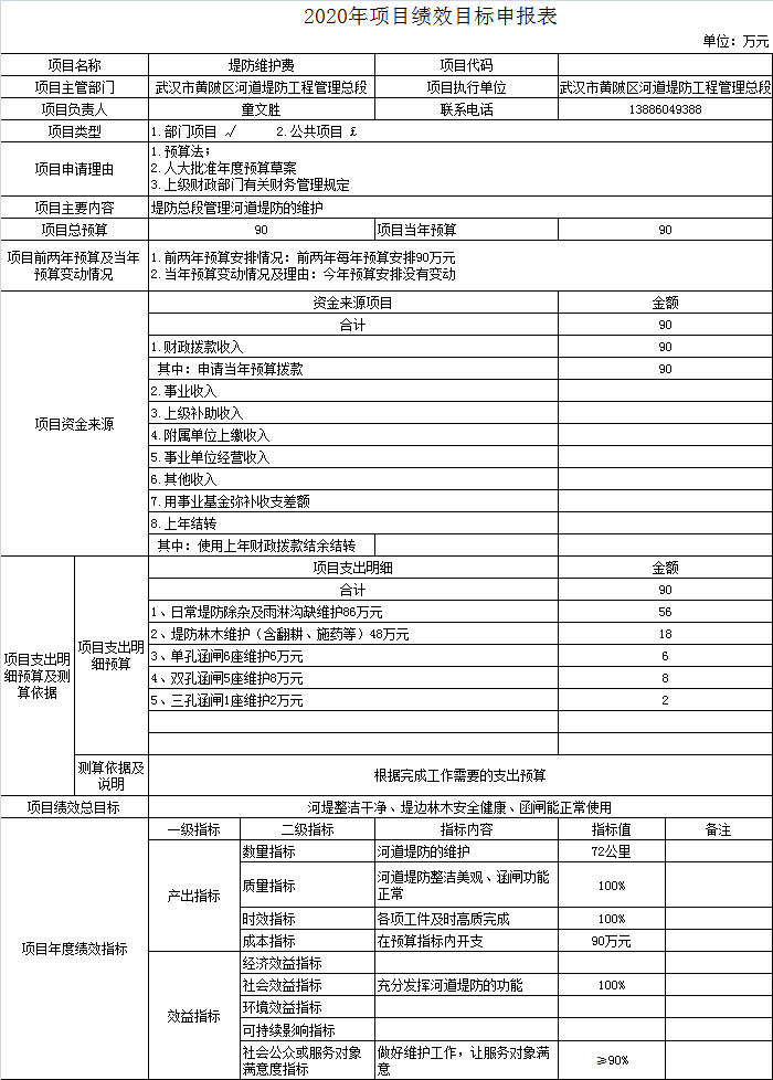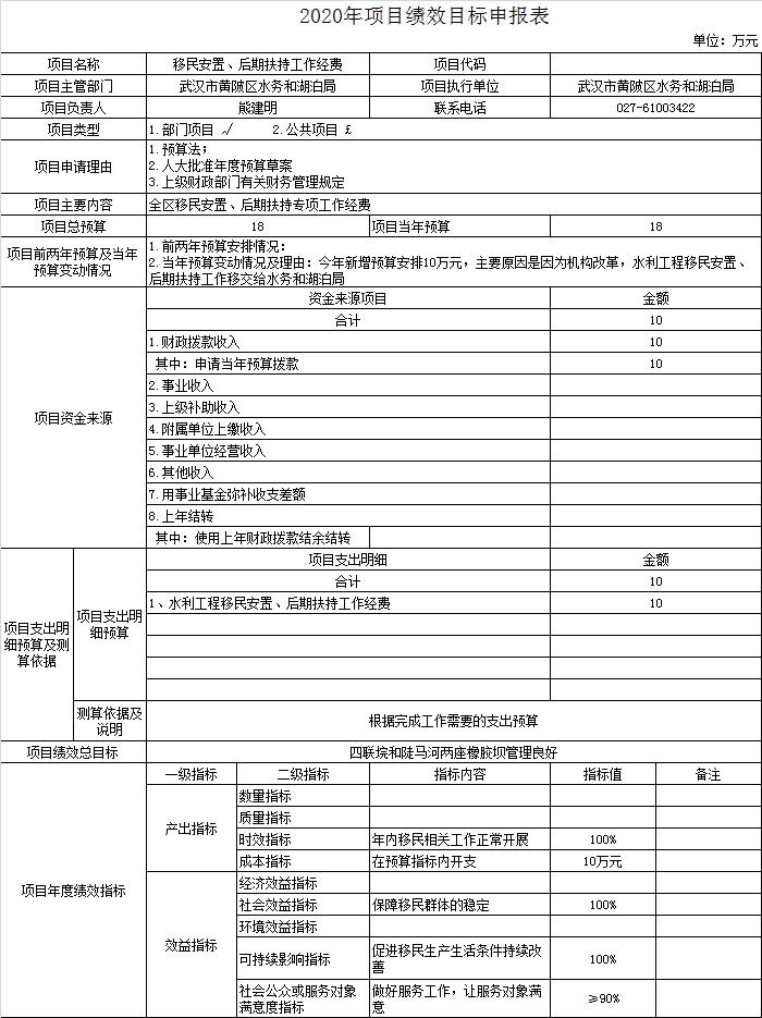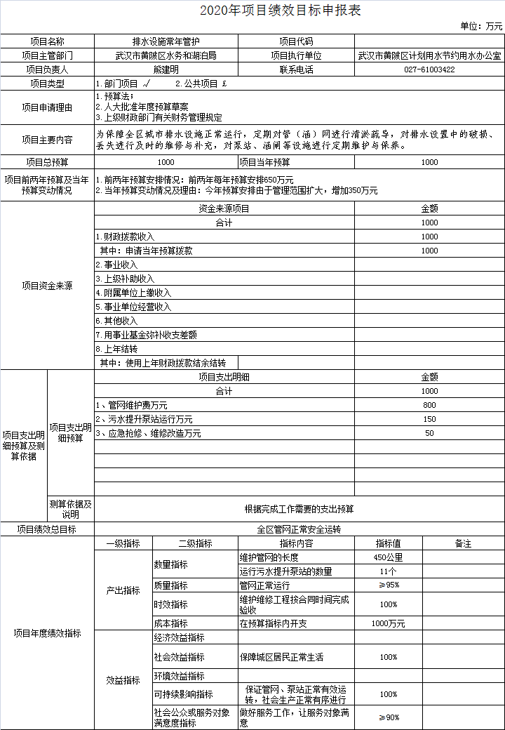 部门公开表10.楼凤网 水务和湖泊局2020年部门项目绩效目标申报表详见附件