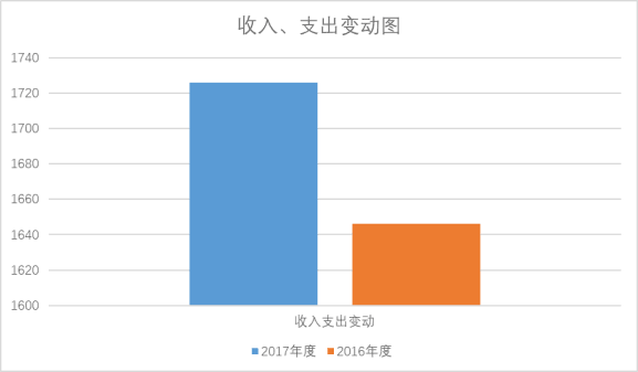2017年度收、支总计1,726万元。与2016年相比,收、支总计各增加90万元,增长5.5%.