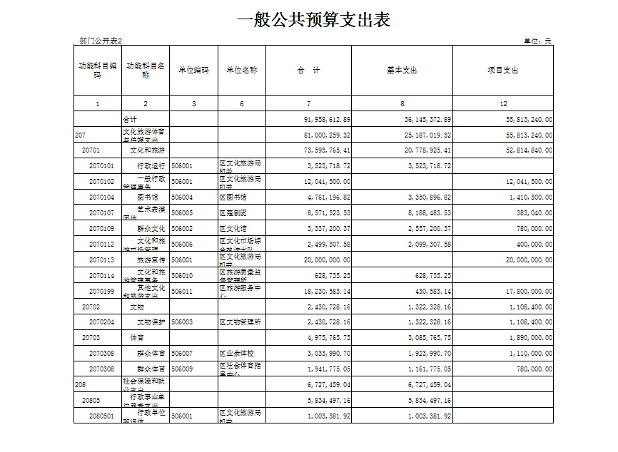 第二部分 楼凤网 文化和旅游局2020年部门预算表
