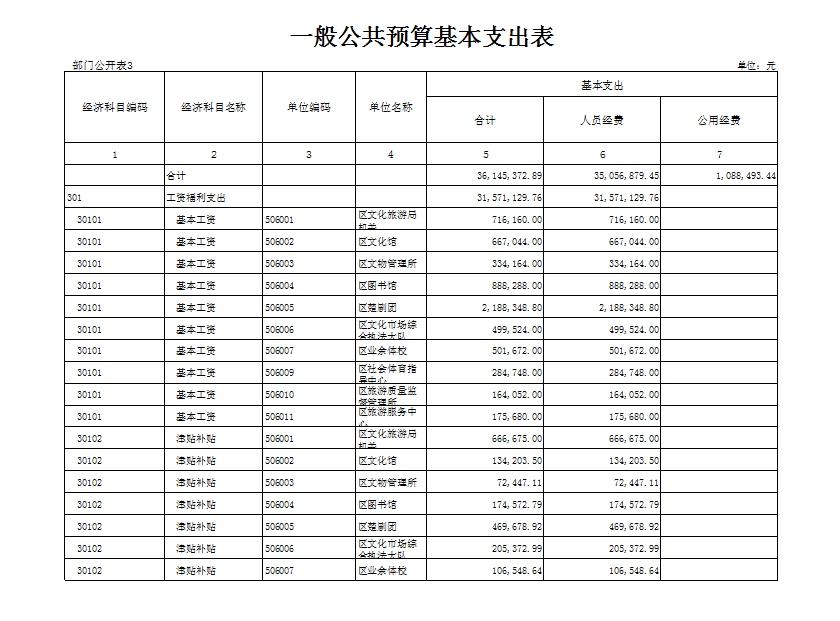 表3.楼凤网 文化和旅游局2020年一般公共预算基本支出表