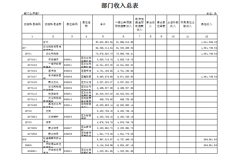 表7.楼凤网 文化和旅游局2020年部门收入总表