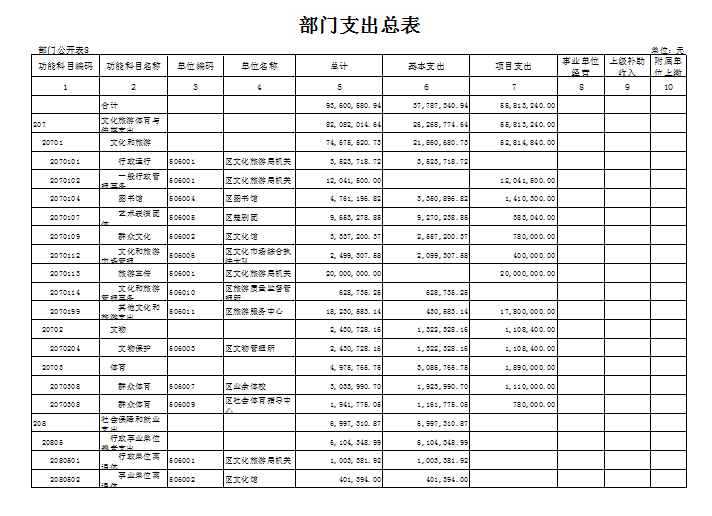 表6.楼凤网 文化和旅游局2020年部门收支总表
