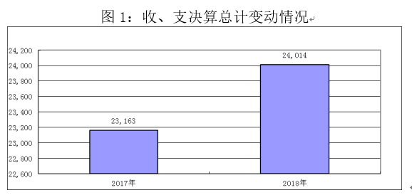 2018年度收、支总计24,013.75万元。与2017年相比,收、支总计各增加850.42万元,增长3.7%,主要原因是长塔路景观绿化、锦绣大道绿化土地租赁费和青苗补偿分别增加60.7万元和29.92万元,木兰湖环湖绿道驿站配置办公设备和打造周边环境费用面积租赁费65万元;军运会木兰大道绿化升级改造项目租土地和青苗补偿费716.56万元等项目