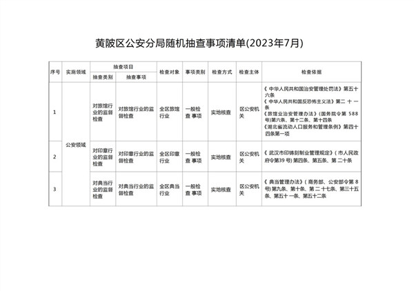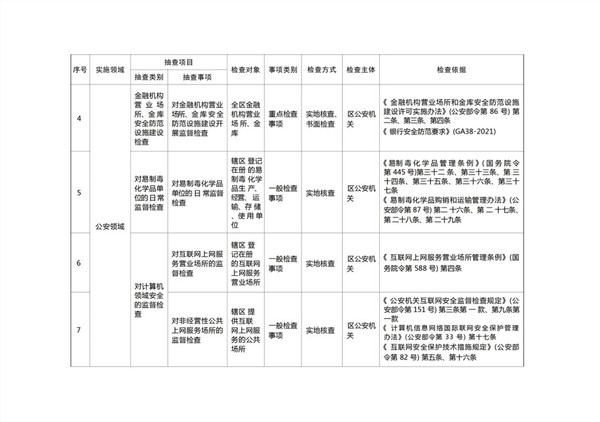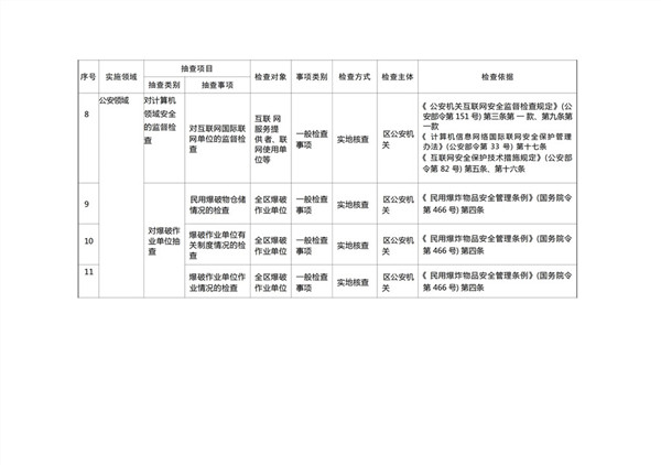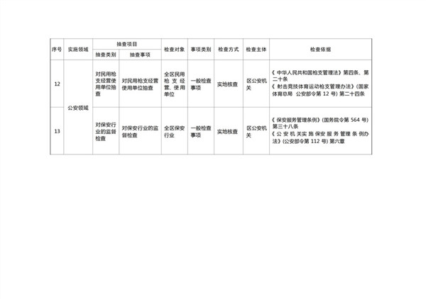 区公安分局对照市级双随机抽查事项清单,将原9项抽查事项增加至13项。