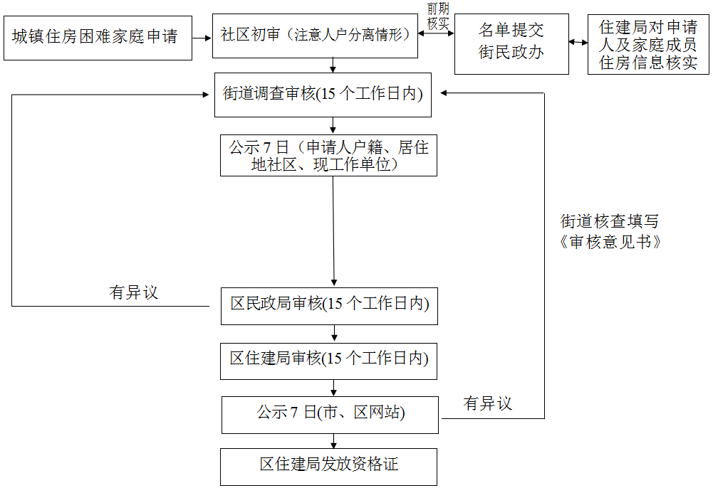城镇住房困难家庭资格审核流程图(三审两公示)