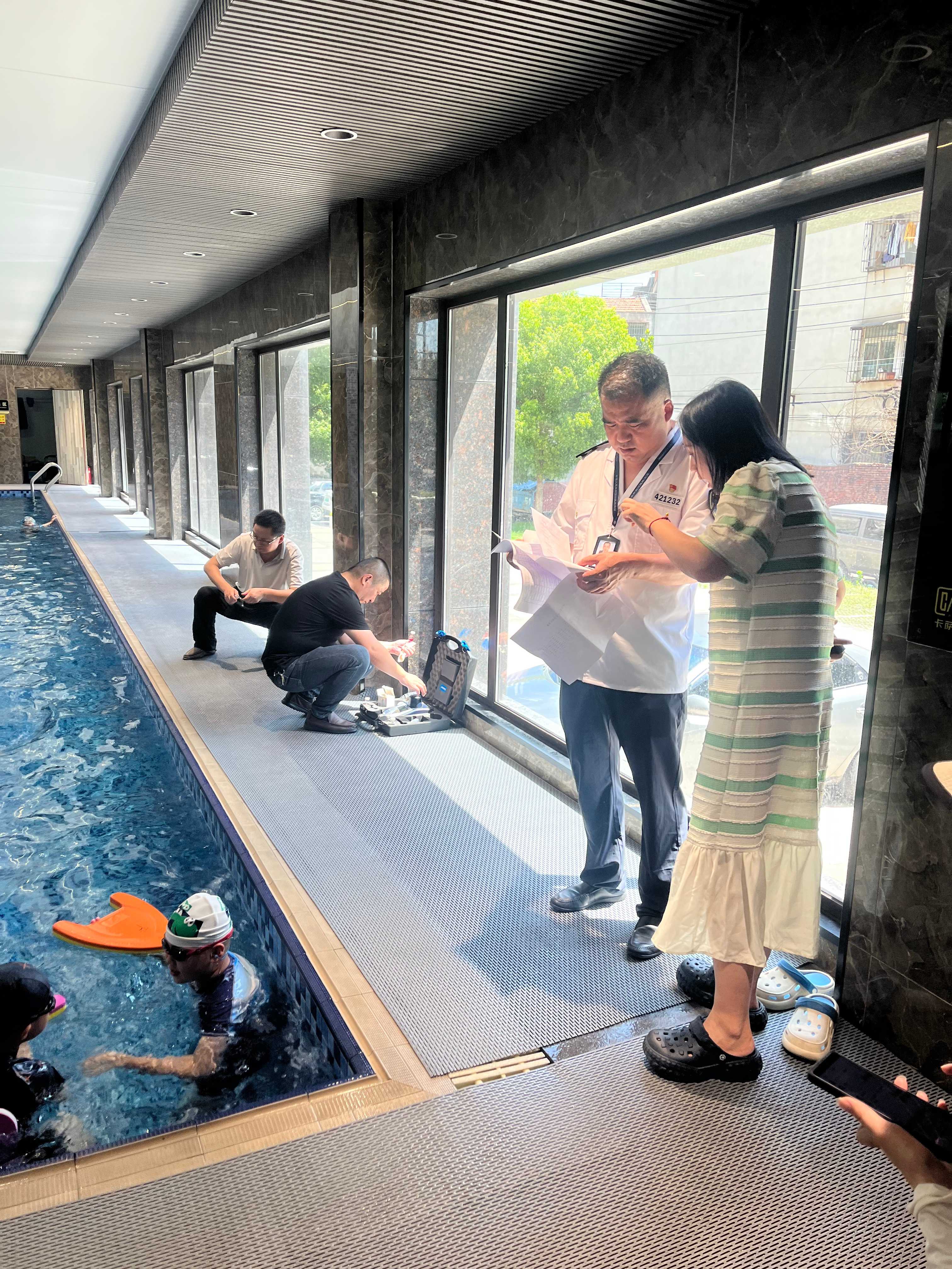 检查重点围绕游泳场所的卫生管理制度落实情况、泳池水循环净化消毒情况、水质自检结果及公示等8个方面展开。针对检查中发现部分游泳场所存在浸脚池未使用、水质自测记录不规范等问题逐一下达《卫生监督意见书》,责令游泳场所经营方限期整改,规范经营。