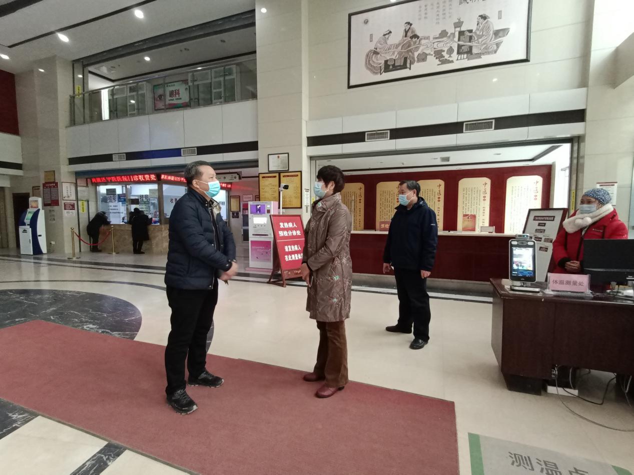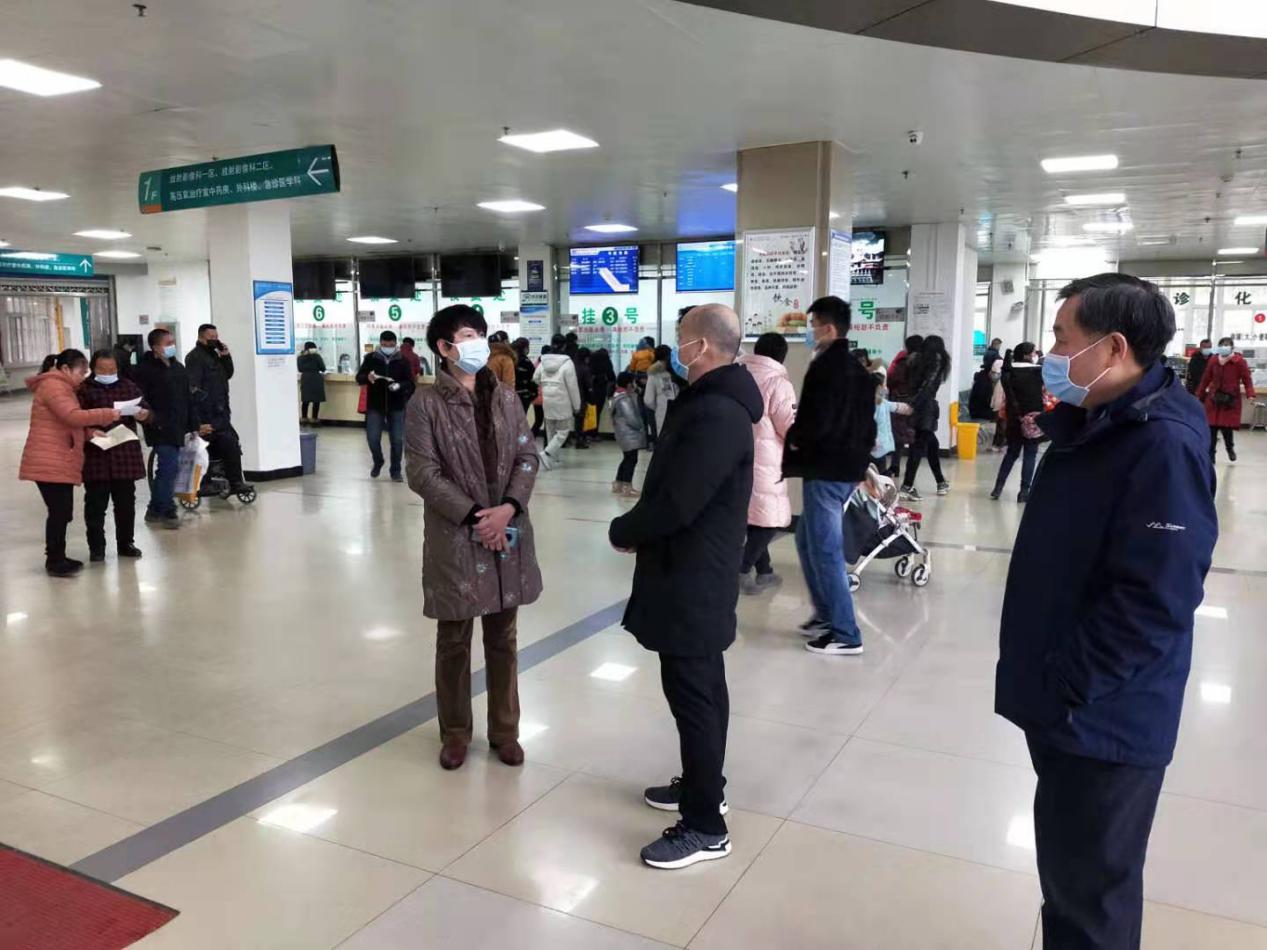 蔡绍英一行先后走访了区人民医院、区中医医院,深入到医院各疫情管控部位、入院关口、重要通道、发热门诊等地进行检查,对疫情防控各项工作进行现场强化部署。