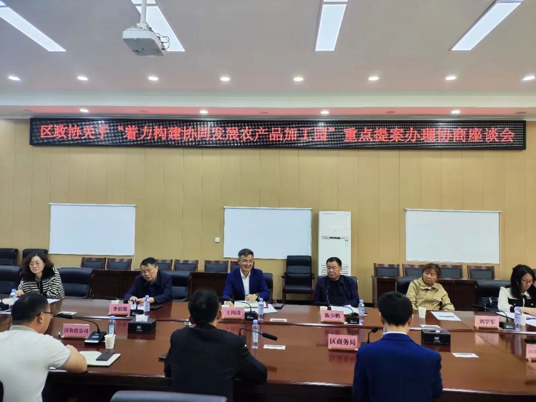 王四清指出,农产品加工业是乡村经济产业中体量最大、关联度最高、农民受益面最广的产业,产业的发展对于提高农产品附加值、促进农民增收具有重要意义。他强调,一是提高认识,把握大局。构建协同发展农产品加工园是实施乡村振兴战略的重要举措,大家要站在全局的高度,深刻把握农业发展的新形势、新任务,切实增强推进农产品加工业高质量发展的责任感和紧迫感。二是招新引优,协同并进。要注重园区企业之间、园区周边地区之间的资源共享、优势互补、协同发展,避免竞争同质化。同时,要加速推动园区基础设施建设,提升园区承载能力和吸引力。三是强化服务,积极履职。委员们要深入学习贯彻党的二十届三中全会精神, 发挥好政协人才荟萃、智力密集、联系广泛优势,深挖履职潜力,持续通过提案和反映社情民意信息资政建言,为全区现代农业产业高质量发展贡献智慧力量。
