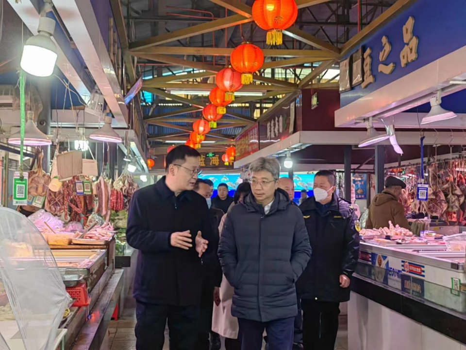 (图为:区政府副区长姜明(左二)检查农贸市场物价和食品安全情况)
