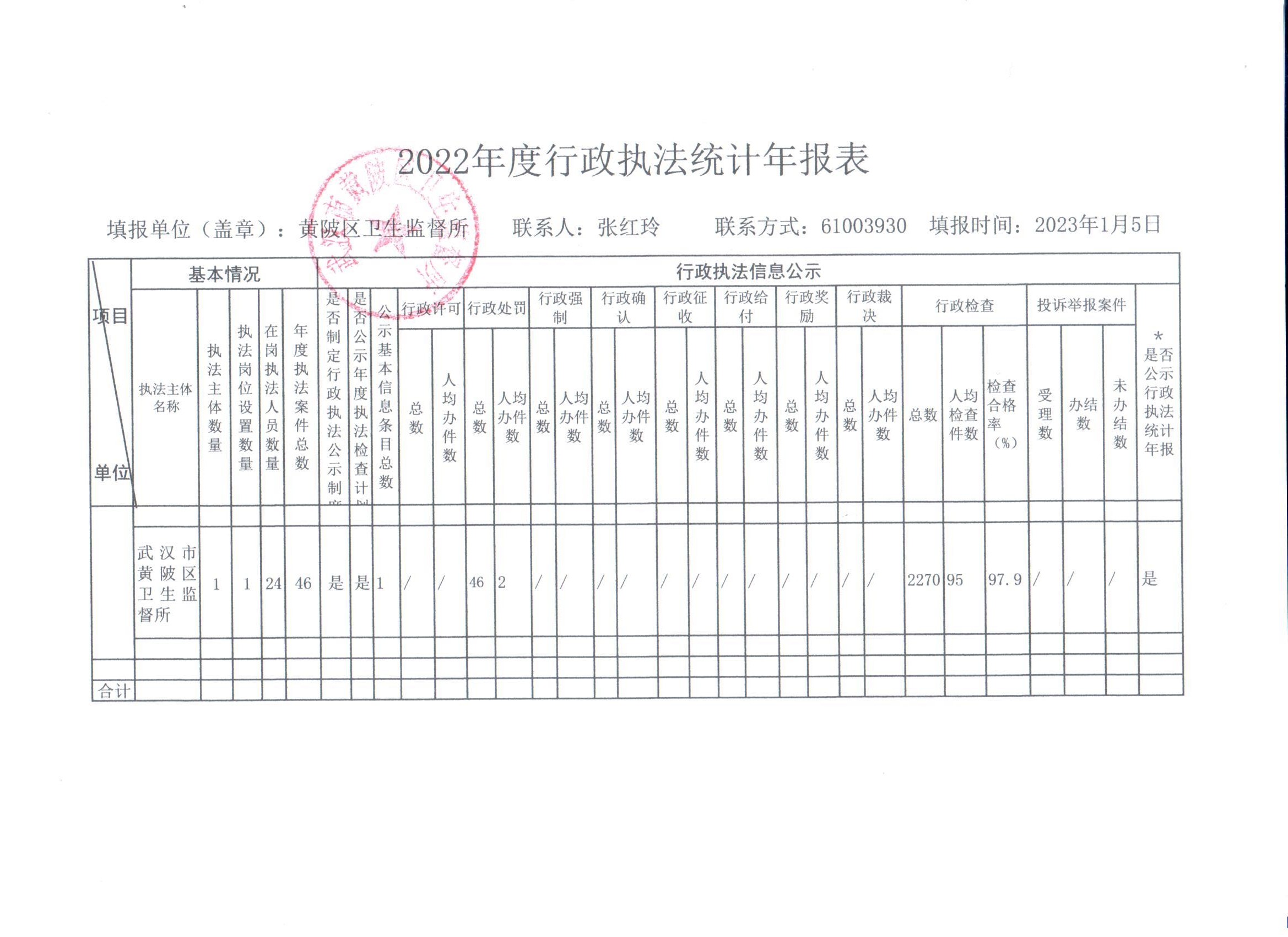 区卫健局2022年度行政执法统计年报表