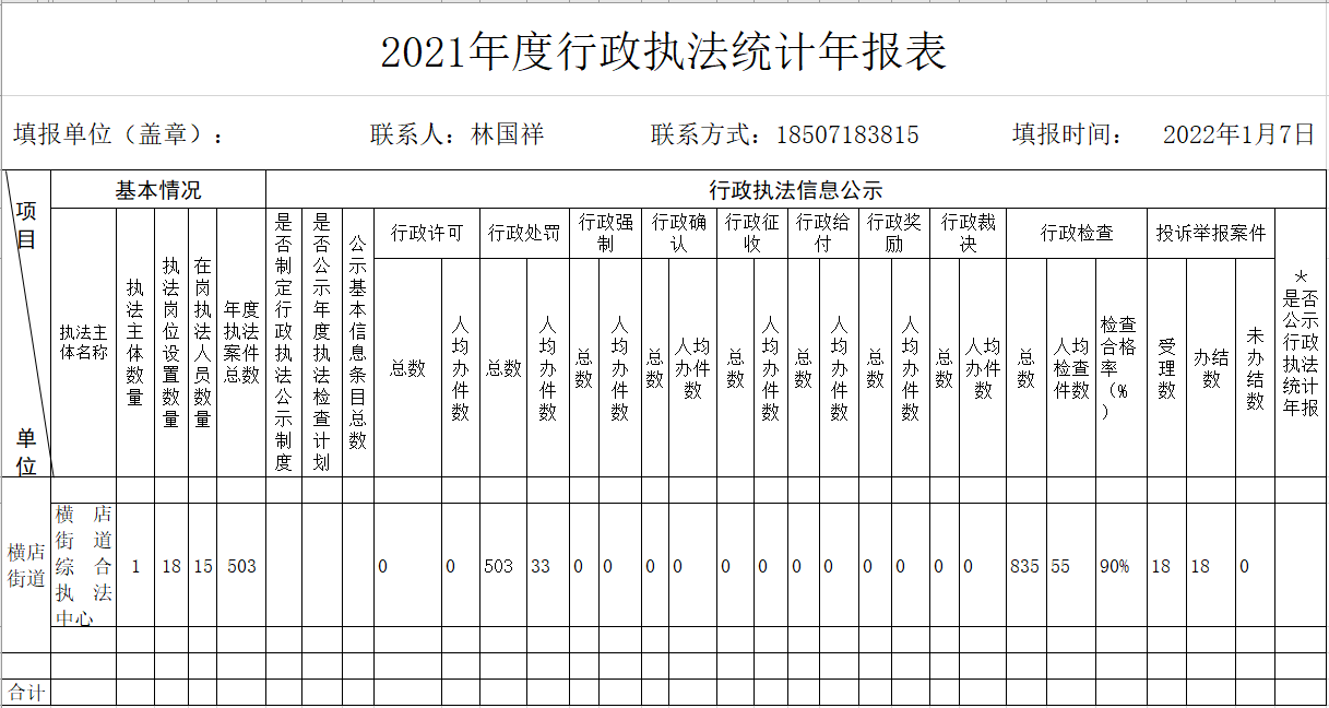 2021年度楼凤网 横店街行政执法统计年报表