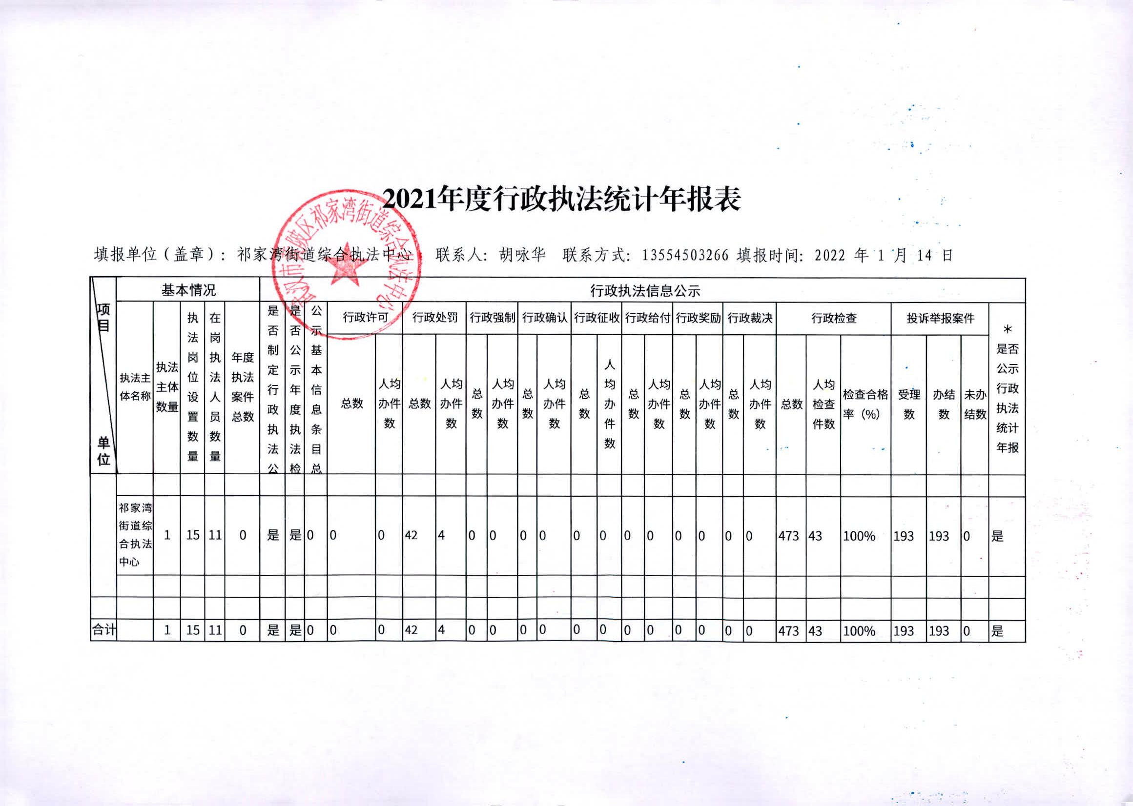 2021年度楼凤网 祁家湾街道行政执法统计年报