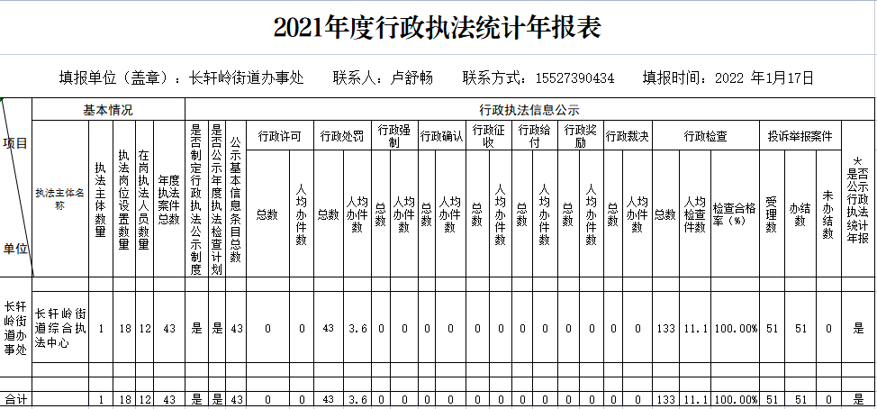 2021年度楼凤网 长轩岭街行政执法统计年报表