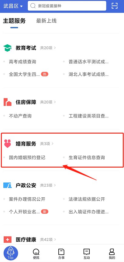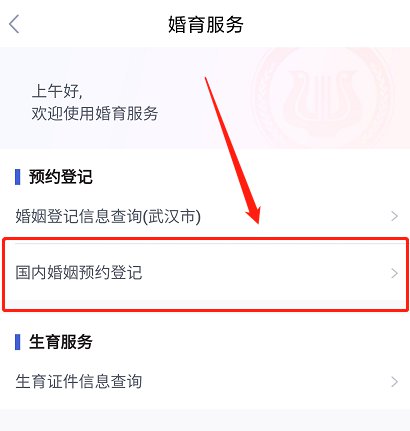 3、点击进入“婚育服务”专栏后,点击“国内婚姻预约登记”进入预约系统;