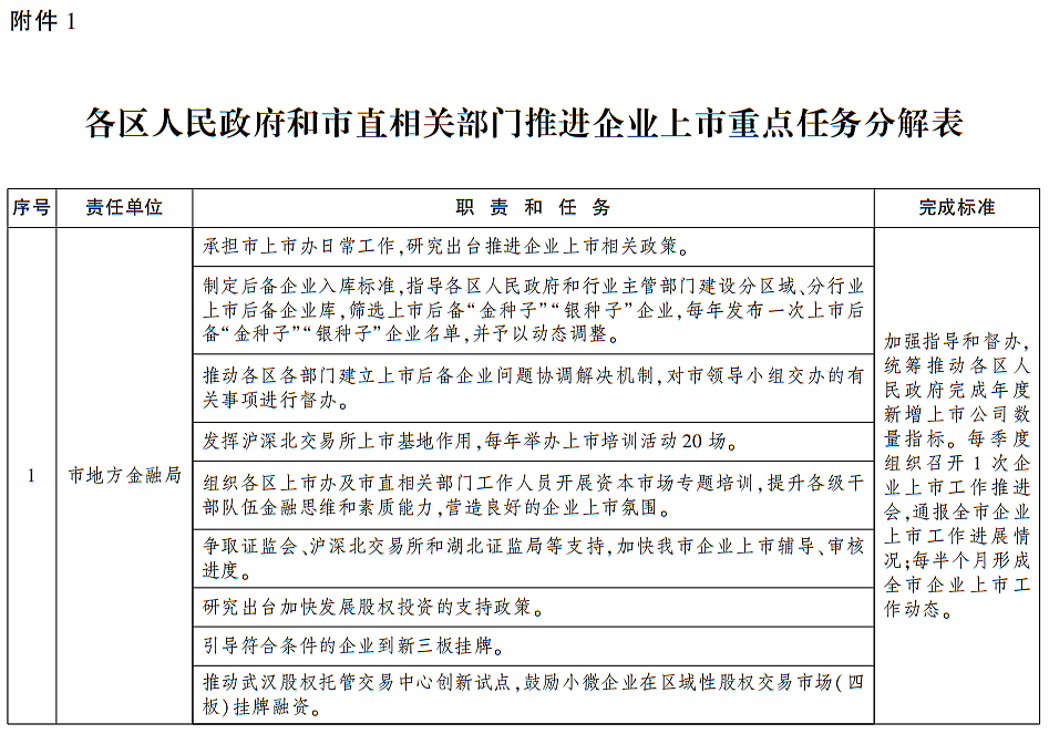 附件:1.各区人民政府和市直相关部门推进企业上市重点任务分解表