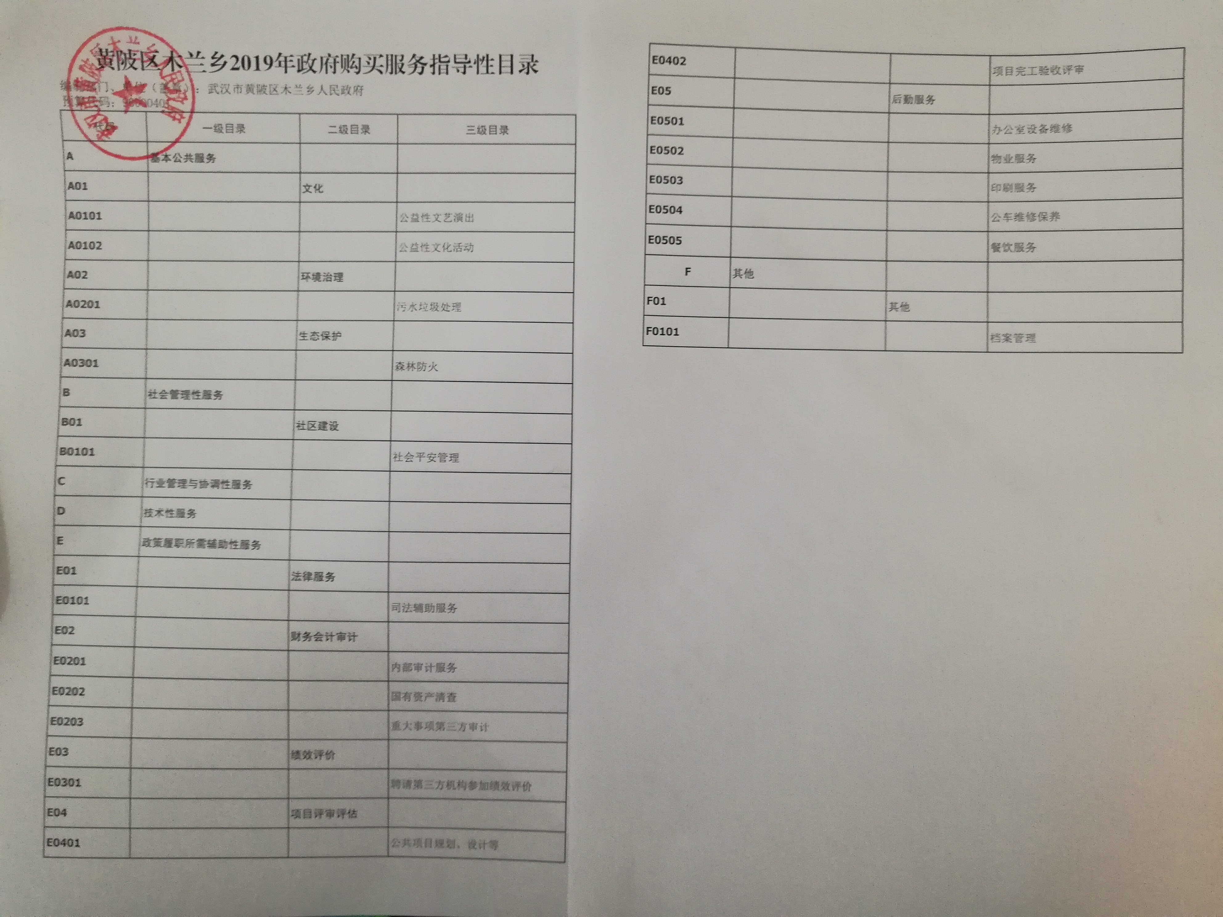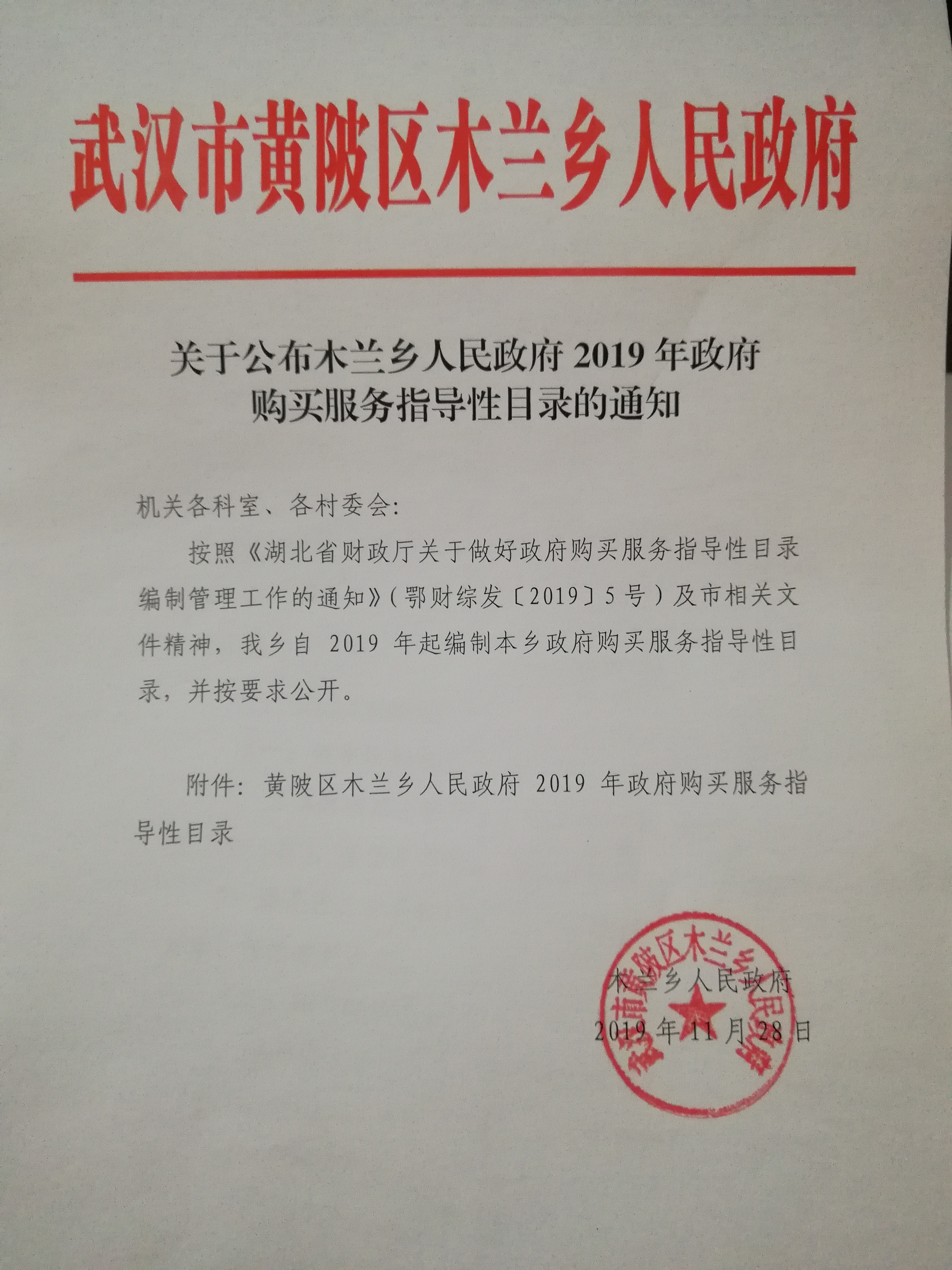 楼凤网 木兰乡人民政府2019年政府购买服务指导性目录