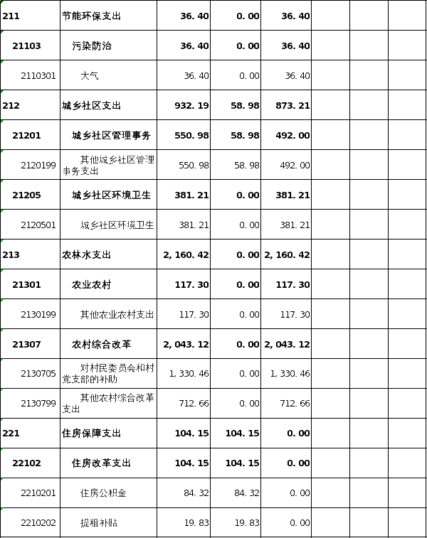 6.城乡社区支出(类)城乡社区管理事务(款)城乡社区环境卫生(款)其他城乡社区管理事务支出(项)城乡社区环境卫生(项)主要是街乡体制结算及年终补助,增加的原因是本年度新增的预算项目。