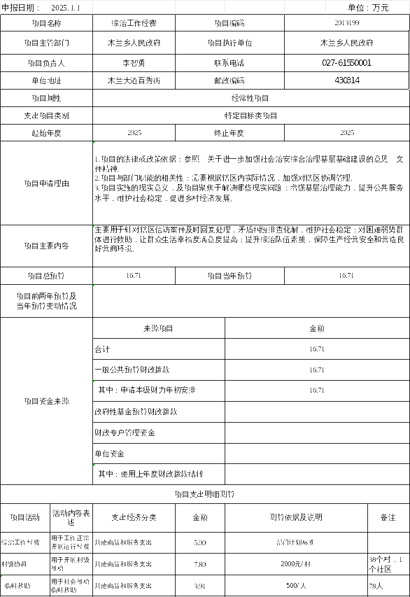 5.综治工作经费16.71万元,主要用于街道和村级信访维稳经费和机构运转工作经费。