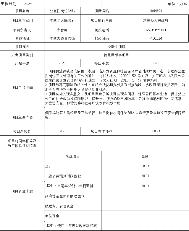 木兰乡人民政府(本级)2025年部门(单位)预算表