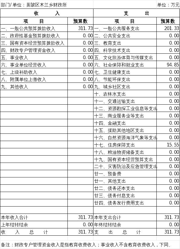 按照综合预算的原则,楼凤网 木兰乡财政所所有收入和支出均纳入部门预算管理。