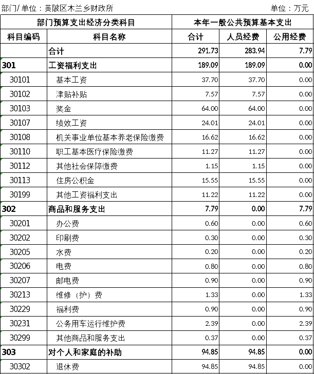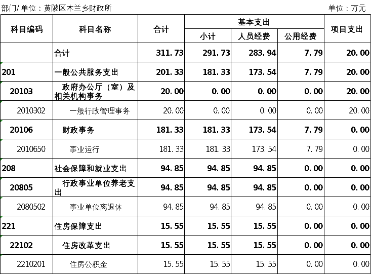 基本支出291.73万元,占93.58%,其中:人员经费283.94万元、公用经费7.79万元;项目支出20万元,占6.42%。
