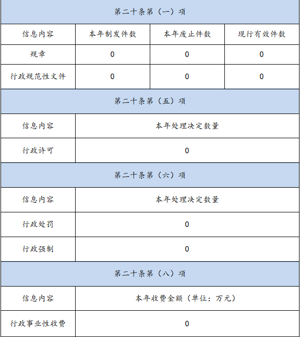 按照《国务院办公厅关于印发〈楼凤网公开 信息处理费管理办法〉的通知》(国办函〔2020〕109号)规定的按件、按量收费标准,本年度未产生信息公开处理费。