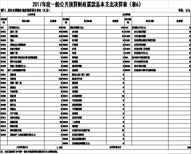 2017度一般公共预算财政拨款基本支出1,488万元,其中,人员经费1,298万元,主要包括:基本工资、津贴补贴、奖金、其他社会保障缴费、伙食补助费、绩效工资、机关事业单位基本养老保险缴费、职业年金缴费、其他工资福利支出、离休费、退休费、退职(役)费、抚恤金、生活补助、救济费、医疗费、助学金、奖励金、生产补贴、住房公积金、提租补贴、购房补贴、物业服务补贴、其他对个人和家庭的补助支出;公用经费190万元,主要包括:办公费、印刷费、咨询费、手续费、水费、电费、邮电费、取暖费、物业管理费、差旅费、因公出国(境)费、维修(护)费、 租赁费、会议费、培训费、公务接待费、专用材料费、被装购置费、专用燃料费、劳务费、委托业务费、工会经费、福利费、公务用车运行维护费、其他交通费用、税金及附加费用、其他商品和服务支出、办公设备购置、专用设备购置、信息网络及软件购置更新、公务用车购置、其他交通工具购置、其他资本性支出、企业政策性补贴、事业单位补贴、其他对企事业单位的补贴。