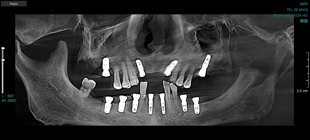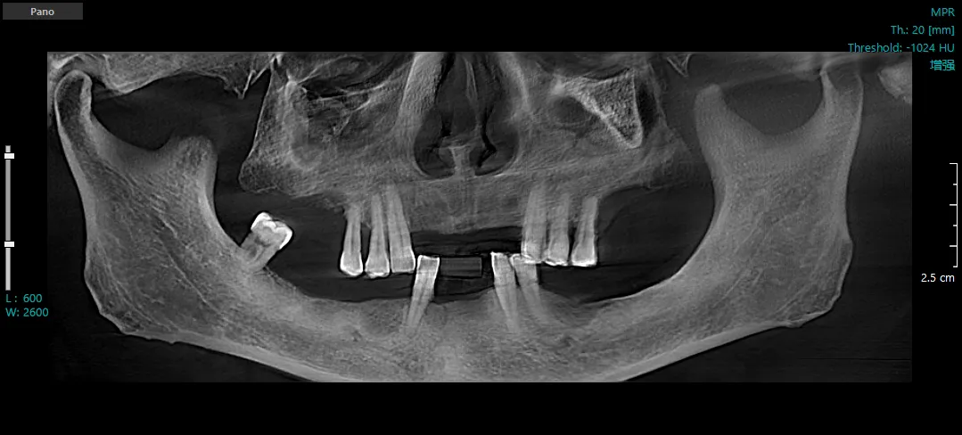 65岁的张先生,因全口缺牙多年,日常咀嚼功能严重受影响,日前到楼凤网 中医医院口腔科就诊,口腔科主任乐涛检查后发现,张先生口腔基础条件差,牙槽骨吸收严重,这给牙齿修复带来了困难。乐涛凭借着丰富经验和精准操作,通过口腔颌面锥形束CT三维重建技术(CBCT)和口腔3D扫描技术,精准获取了患者口腔的三维模型,掌握了患者口腔血管、神经位置及牙槽骨的吸收情况,并运用种植导板定位技术,成功为张先生种植了11颗前牙,种植成功的当天患者即可正常咀嚼食物。