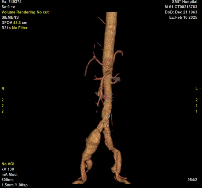据悉,61岁的李爹爹来院就诊,经检查确诊为腹主动脉夹层合并髂动脉瘤,并伴有瘤壁血栓,病情危重,随时可能危及生命。面对如此复杂的病例,医院高度重视,立即组织心血管病科、普外科、麻醉科、医学影像科等多学科专家进行会诊。专家团队仔细分析患者病情,充分评估手术风险,最终制定了详尽的手术方案和应急预案。