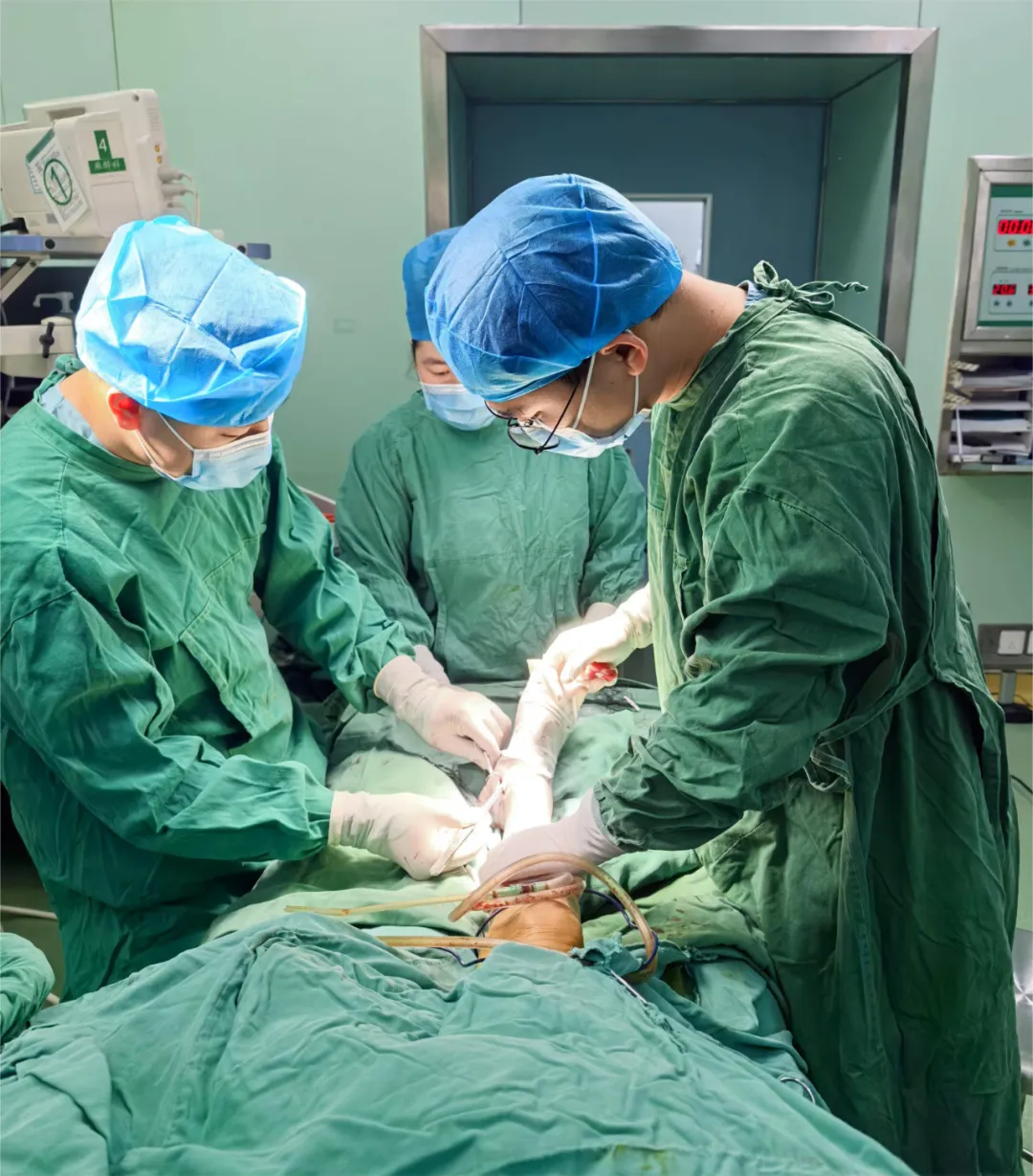 在为患者成功溶栓后,金志辉教授带领骨伤一科团队为患者成功实施开放椎管减压+神经根管减压+椎间盘摘除+椎间融合器植入及植骨融合术+钉棒内固定术这一高难度骨科手术。