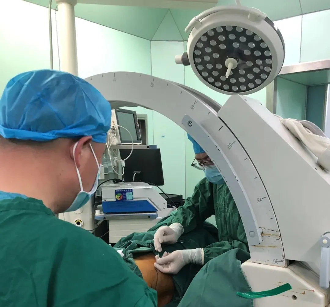 患者一直惧怕开放手术,对全身麻醉也有抵触心理,结合患者病情和需求,骨伤一科主任金志宏决定采用C型臂透视引导下脊神经阻滞术联合骶管注射治疗,该技术可精准定位病灶,只需通过一个细小针眼将抗炎、营养神经药物直接送至受压迫的神经根周围,不需开放手术,便可快速消炎止痛,同时促进神经修复。