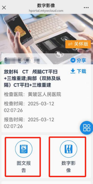 3手机点击对应的按钮,可分别查看“图文报告”或“数字影像。