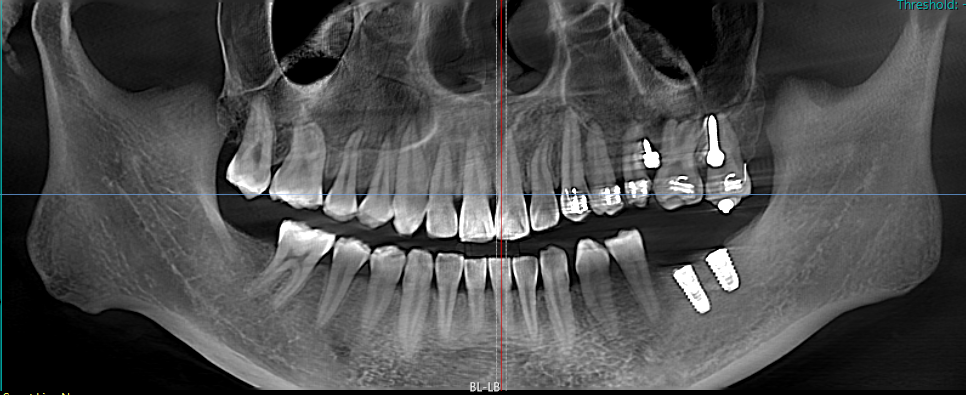 面对此情况,易建飞团队决定采用"正畸-种植联合疗法",先正畸后种植,先改善牙齿排列和咬合关系,为种植牙提供更理想的条件,也为种植牙齿提升美观性、功能性和长期稳定性。这种综合治疗方式能够更好地满足患者的需求,实现更自然、协调的口腔修复效果。