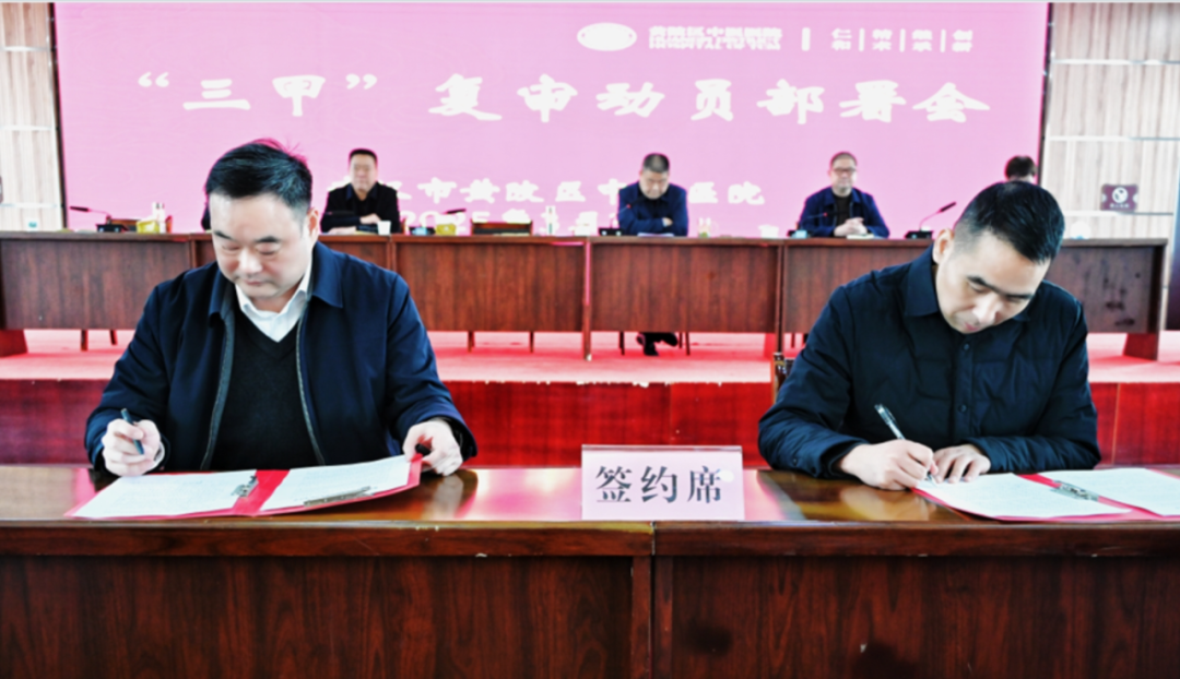 随后,院长段瑞华与科室代表签订了《三甲复审目标责任状》,明确“三级责任”机制,即领导班子分片包干、职能部门牵头督导、临床科室守土尽责,形成全员参与、协同攻坚的强大合力。